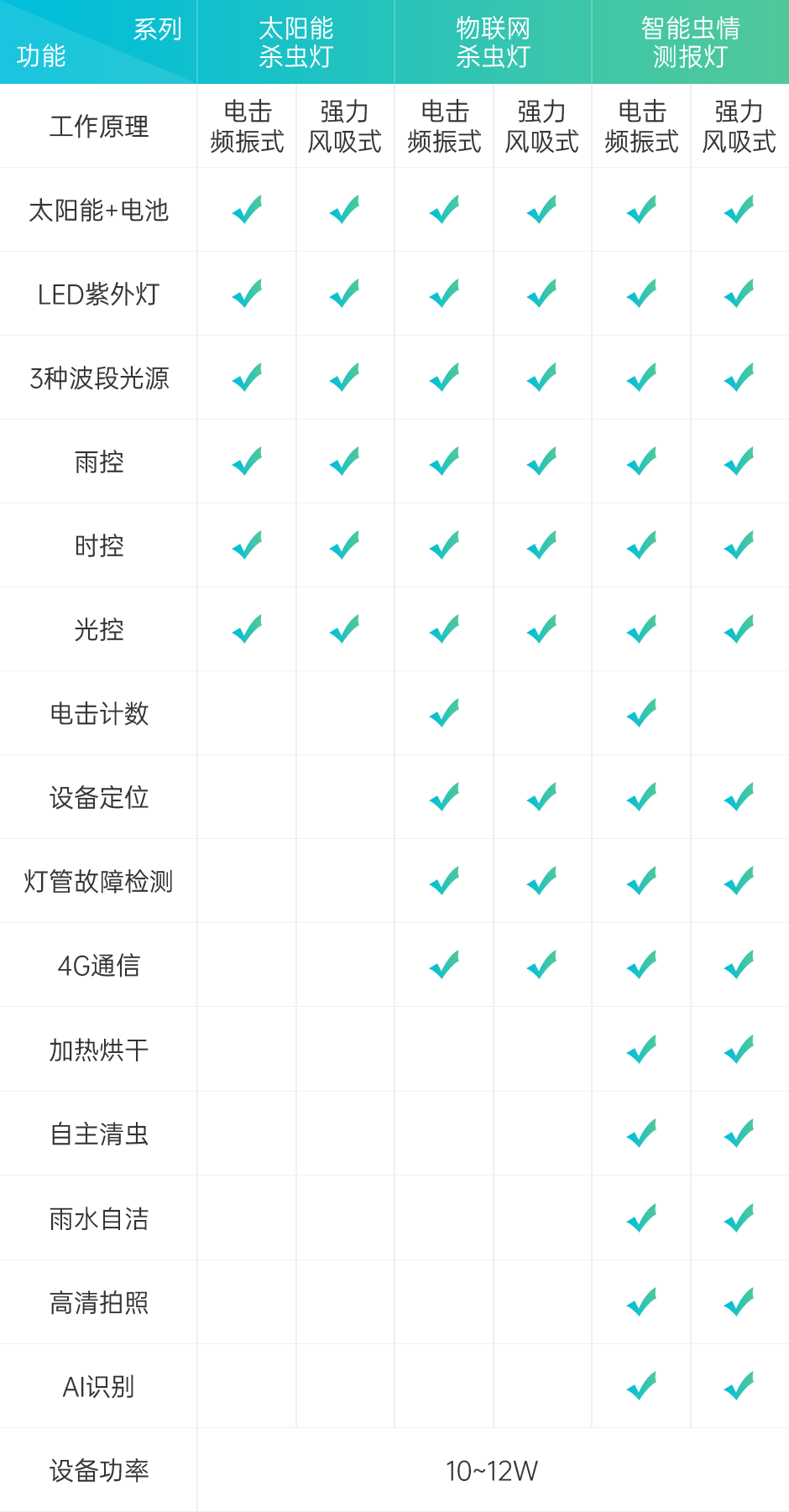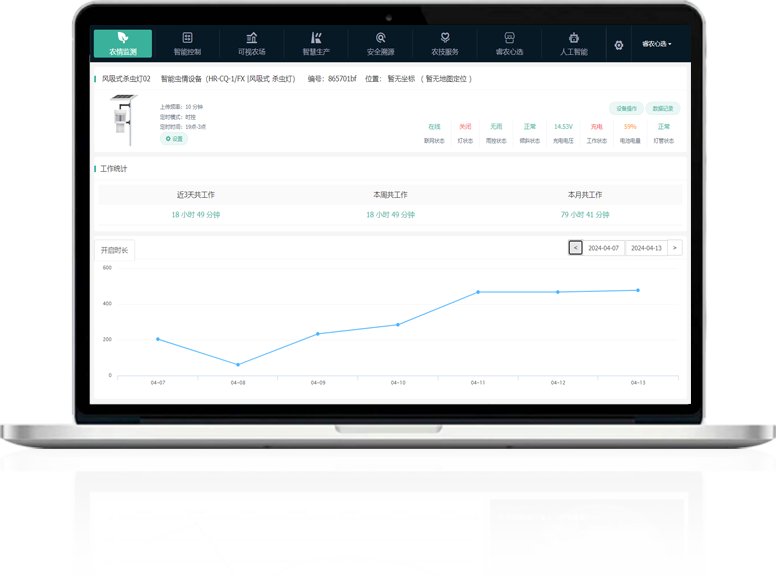 具備光控、雨控、時控 3種智能控制切換模式,實現依據晝夜、天氣、時段變化自動控制燈光開光和設備啟停,也可遠程使用電腦/APP隨時隨地聯網遠程管理,無需人工看管也能智能殺蟲。