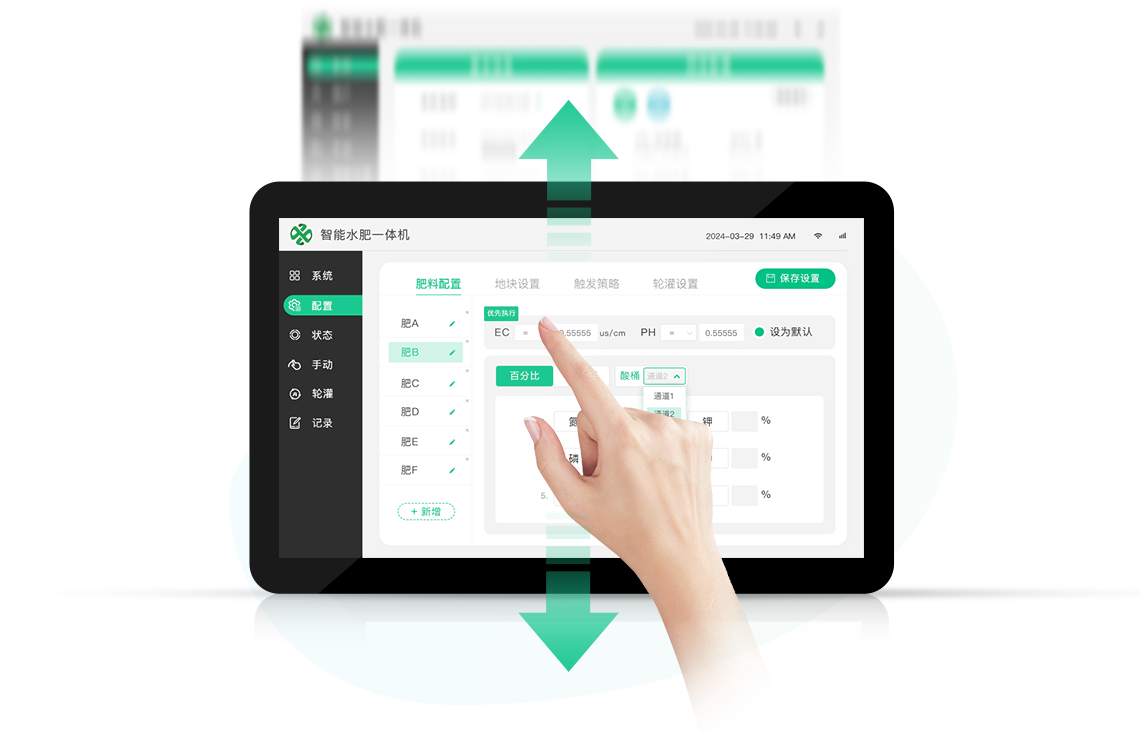 標(biāo)配3肥1酸通道,模塊化設(shè)計,支持肥料通道、閥門數(shù)量任意擴(kuò)展,靈活應(yīng)用各種種植管理需求。